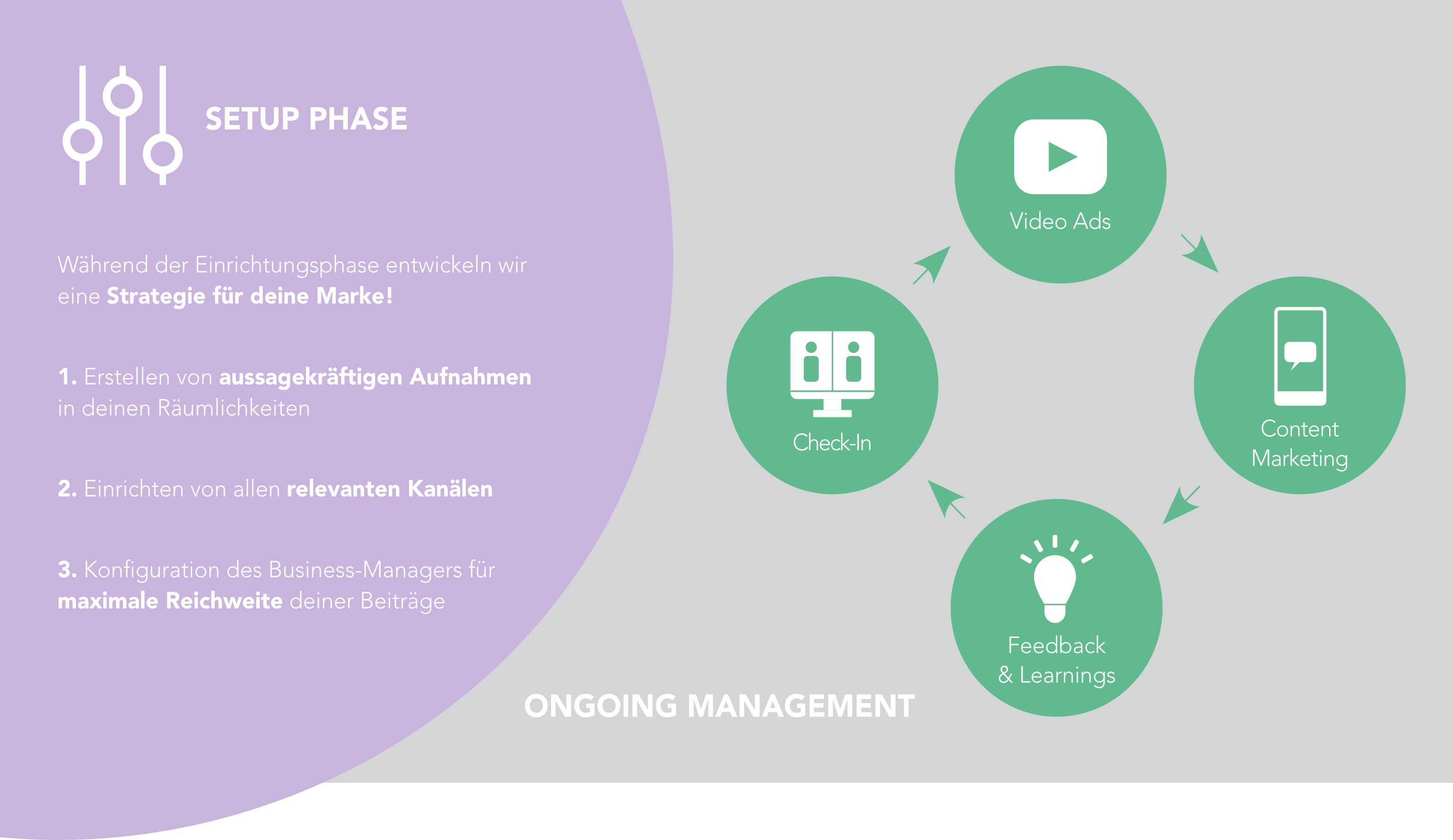 In unserer Zusammenarbeit gehen wir immer wieder auf Deine Ziele ein und entwickeln die besten Lösungen, um Dir zu helfen Deine Kunden zu erreichen.